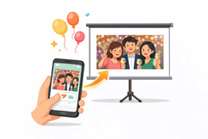 スライドショーはアップロードされた順番で再生される仕組みのため、大人数でのご利用でも順番に処理され問題ありません。